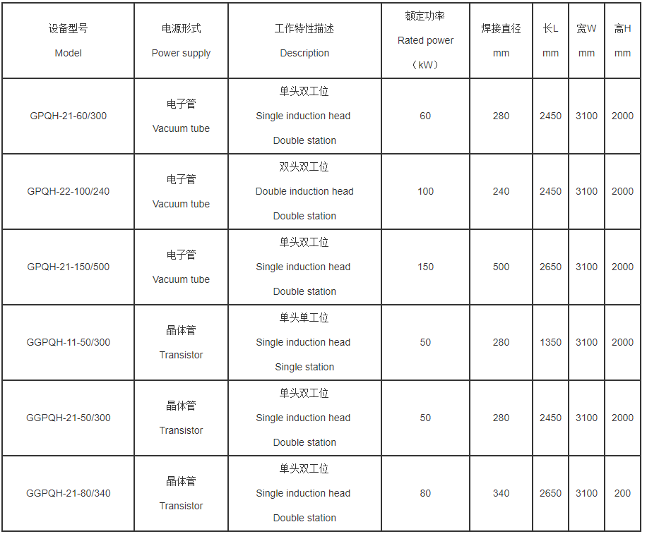 ?? ? ? ?電源功率:50KW、80KW、100KW 電源頻率:200-300KHZ